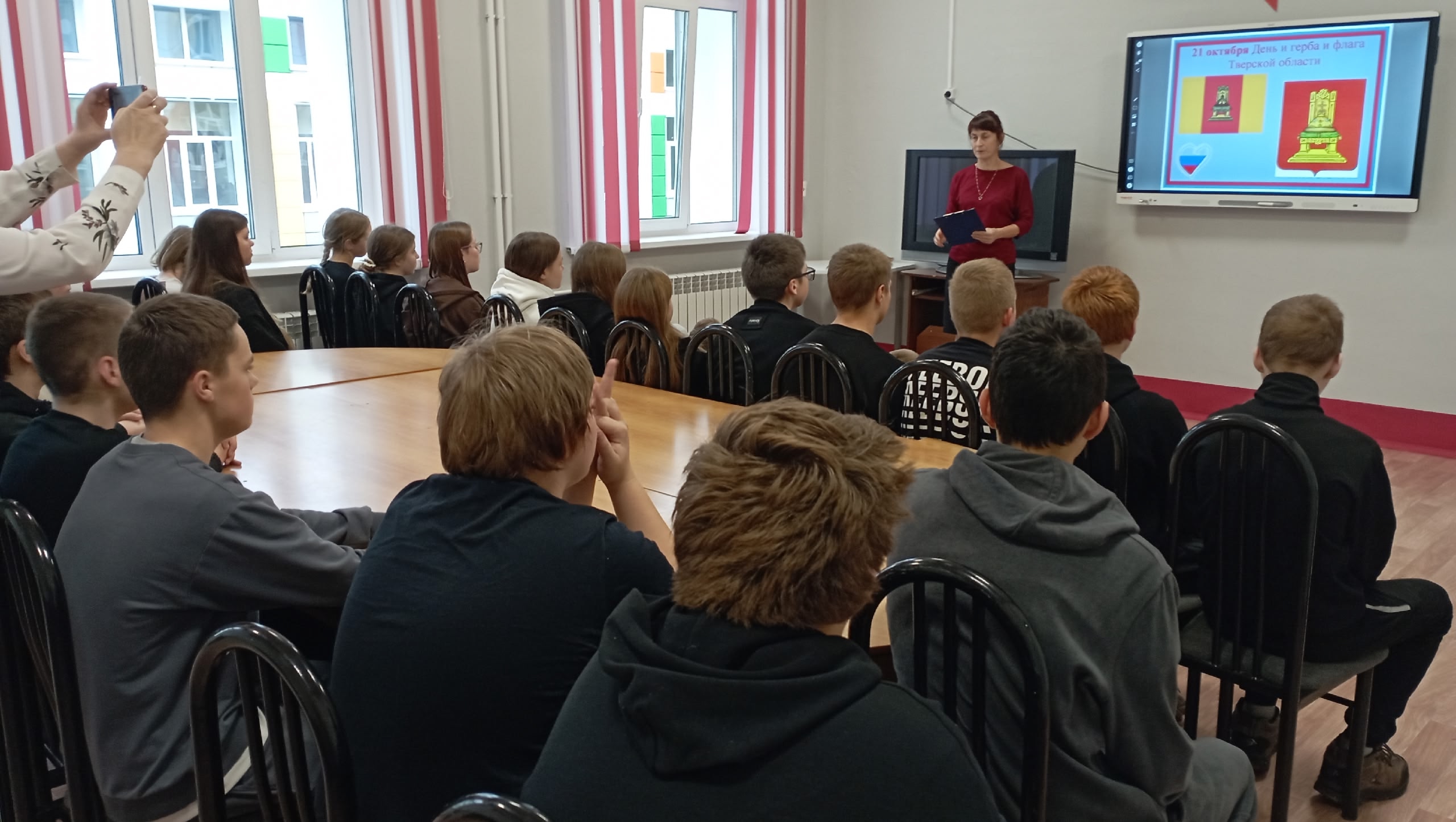 В рамках празднования Дня герба и флага Тверской области для учащихся 8-х классов Весьегонской школы было организовано познавательное мероприятие. Председатель территориальной избирательной комиссии Весьегонского округа Алла Лисенкова совместно с библиотекарем Ириной Рачковской провели для ребят увлекательную встречу.